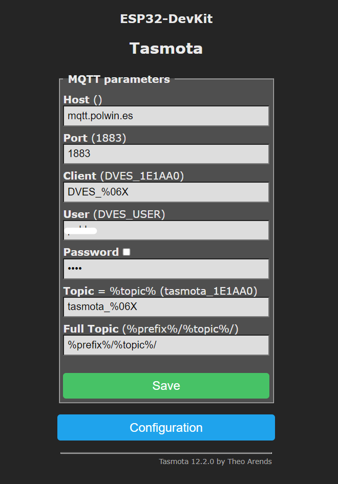 Por un lado, hay que configurar el Broker MQTT, para ello accedemos a Configuration – > Configure MQTT y tendremos la siguiente pantalla: